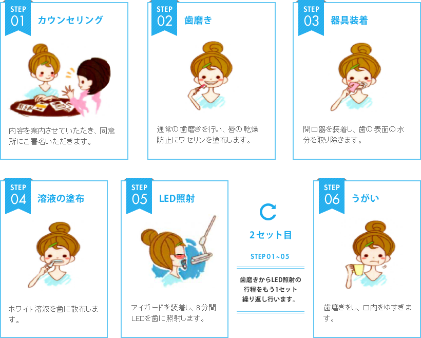 歯磨きからLED照射の行程をもう1セット繰り返し行います。